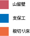 建設時には斜面の地盤を掘削する必要がありますが、周囲の地盤が崩れないように支保工として支持構造物を使います。また、斜面の安定性を確保するために、根切り作業も行われます。